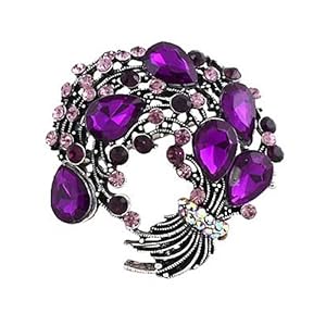 Burnished Silvertone Purple Rhinestone Brooch Pin Fashion Jewelry
