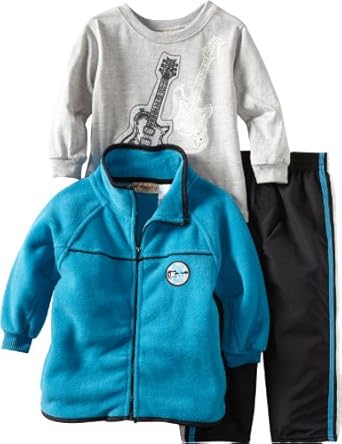 Kids Headquarters Boys 2-7 Winter Fleece Open Front Jacket With Long Sleeve Tee And Pant Set, Blue/Gray, 2T