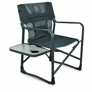 Product Description : The BaseCamp Rhino Directors chair is sure to be a favorite at all your outside events. It is a king size chair with a padded seat and backrest as well as a fold-away table with a drink holder on the side.
