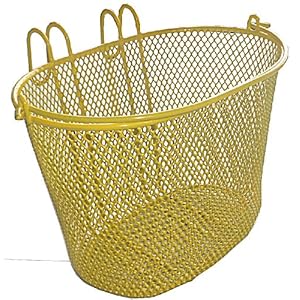 Vendor: Wire mesh children basket yellow with hooks Finely woven plastic coated basket, easy to put on with swing up handle Size: (L x
