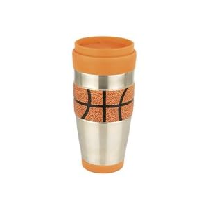 Product Description : This is a great way to enjoy your next beverage. This tumbler has a 1 and ? inch strip of a basketball design with an actual feel of a real basketball. The tumbler is both plastic and stainless. The tumbler can be placed on the top shelf of the dishwasher. The lid is a screw on lid with a slide on the top to open and close. The tumbler will hold 16 ounces of liquid.