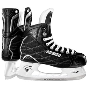 Product Description : The Nexus 200 Ice Skates represent a great entry level skate. These skates feature a lightweight mesh quarter package for stable ankle support. A brushed nylon liner and a patented anatomical heel/ankle support cup keep your foot comfortable and properly positioned during play. Comfort foam ankle pads wrap the foot and ankle while providing impact protection. A pre-shaped comfort felt tongue is comfortable and looks great. Molded EVA footbeds and a Profiled Pro-8 outsole connect player and ice. TUUK Lightspeed Pro with stainless runners round out this competitive entry-level skate.