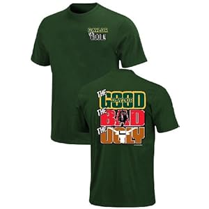 Product Description : : A classic slogan top for football season after season the College The Good, The Bad, and The Ugly Kids T Shirt for the Baylor Bears comes in green with a loose-fit body made from 100% Cotton that resists shrinkage to give you seasons of wear. Features on this Officially Licensed College Short Sleeve Top from New World Graphics include a screened Baylor logo on the left chest and on the back screened logos for The Good-Baylor, The Bad-Texas Tech, and The Ugly-Texas.