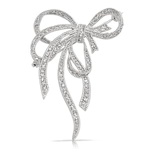 Christmas Gifts Bling Jewelry Pave Cubic Zirconia Silver Tone Fancy Knot Bow Ribbon Brooch Pin