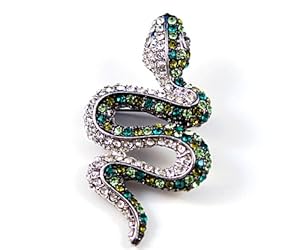 Silvertone Blue Green and Clear Rhinestone Snake Brooch Pin Fashion Jewerly