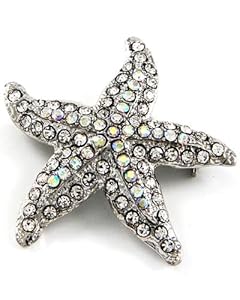 Silvertone Aurora Borealis and Clear Rhinestone Starfish Brooch Fashion Jewelry