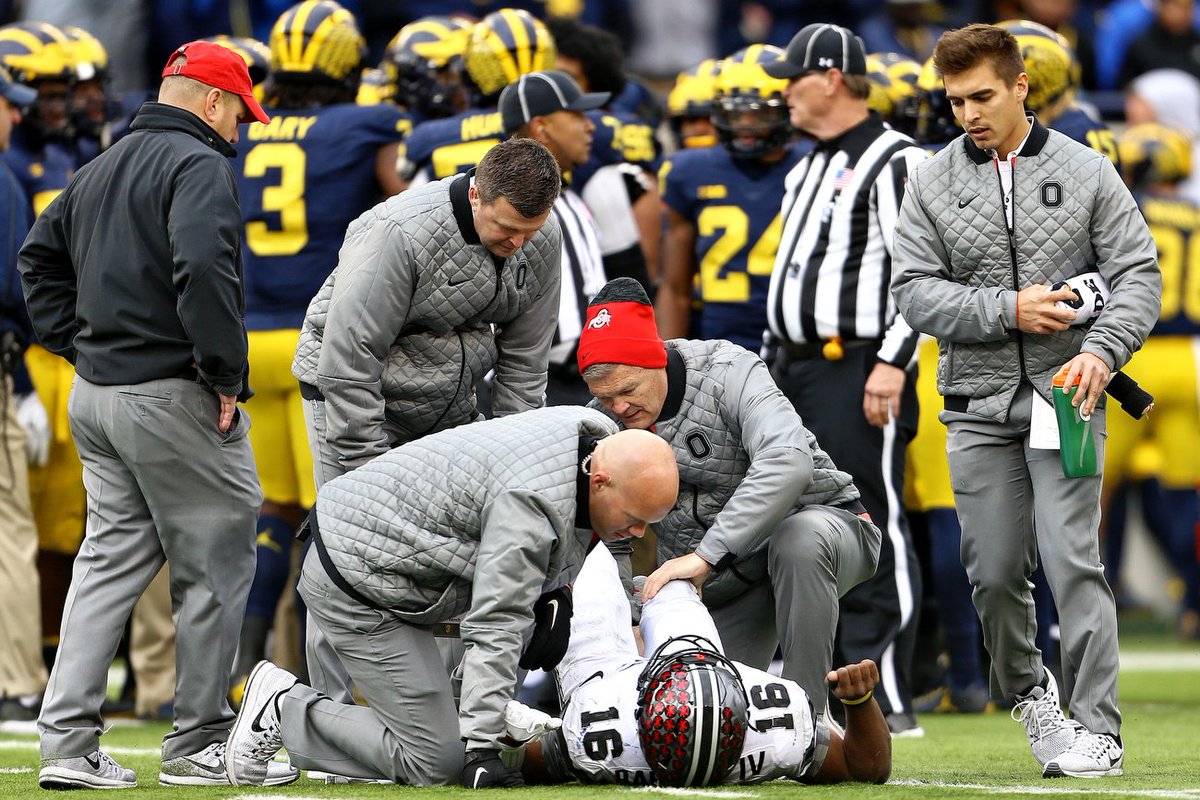 The Ohio State head coach said that Barrett was hurt during pregame by a cameraman on the sidelines and called for an...